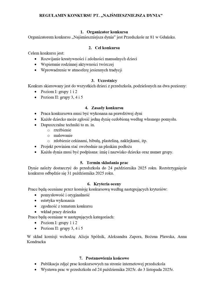 DYNIOWY KONKURS 🙂 - Przedszkole nr 81
